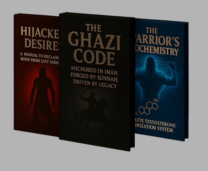 ✅ The Ghazi Code — Rebuild your soul, focus, and identity✅ The Warrior’s Biochemistry — Rewire your hormones and unleash discipline✅ Hijacked Desires — Break free from addiction and master your urges